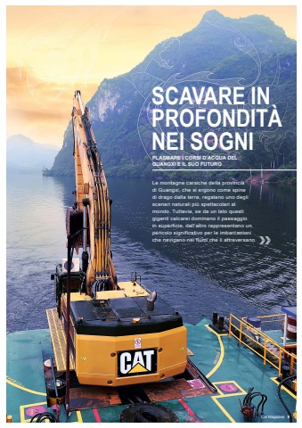 SCAVARE IN PROFONDIT%u00c0 NEI SOGNILe montagne carsiche della provincia di Guangxi, che si ergono come spine di drago dalla terra, regalano uno degli scenari naturali pi%u00f9 spettacolari al mondo. Tuttavia, se da un lato questi giganti calcarei dominano il paesaggio in superficie, dall%u2019altro rappresentano un pericolo significativo per le imbarcazioni che navigano nei fiumi che li attraversano.PLASMARE I CORSI D%u2019ACQUA DEL GUANGXI E IL SUO FUTUROCat Magazine 9